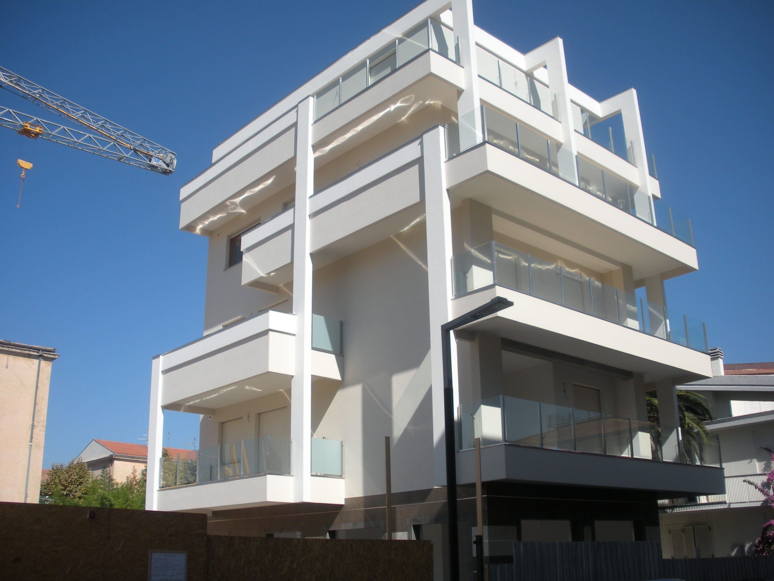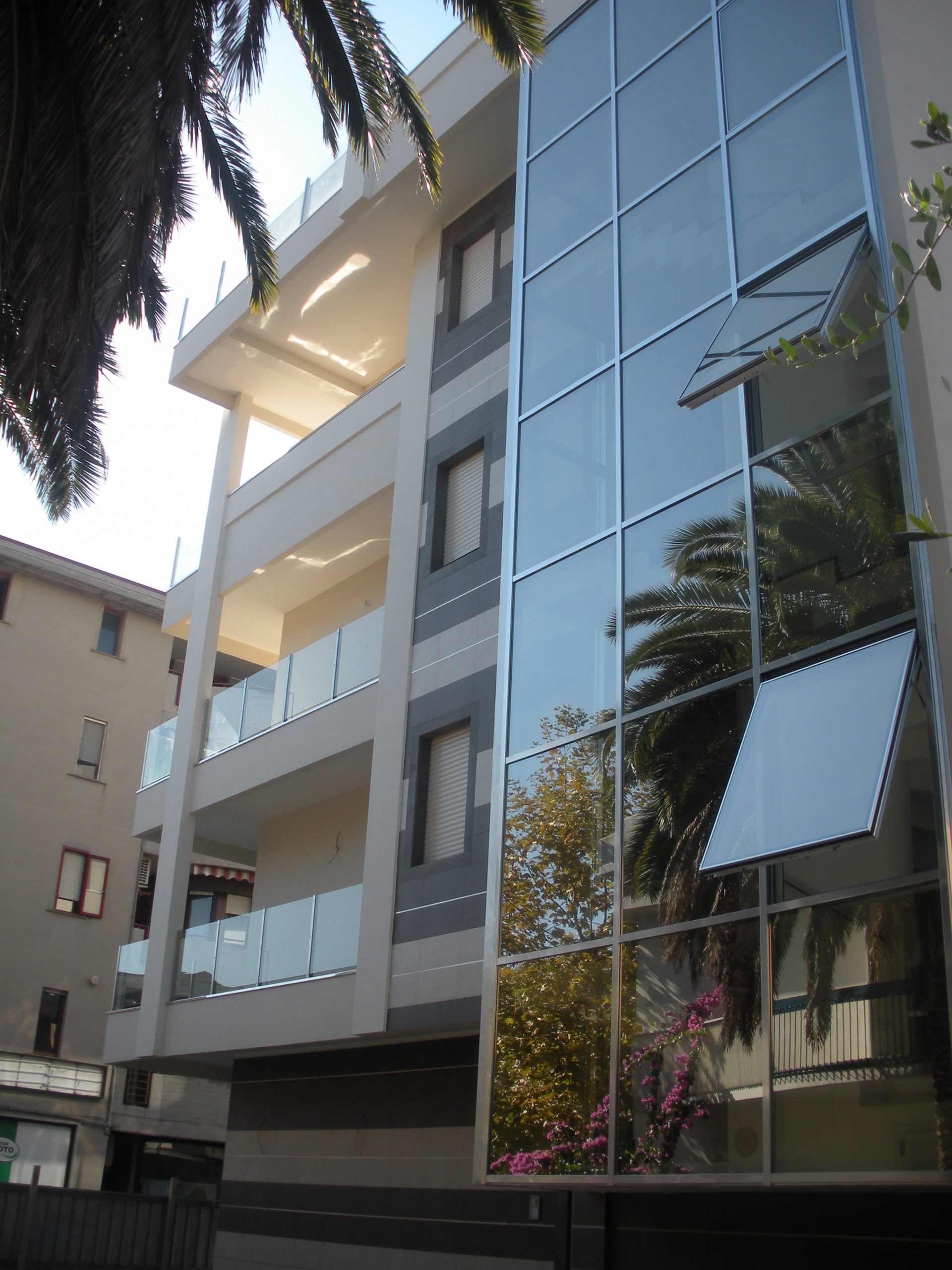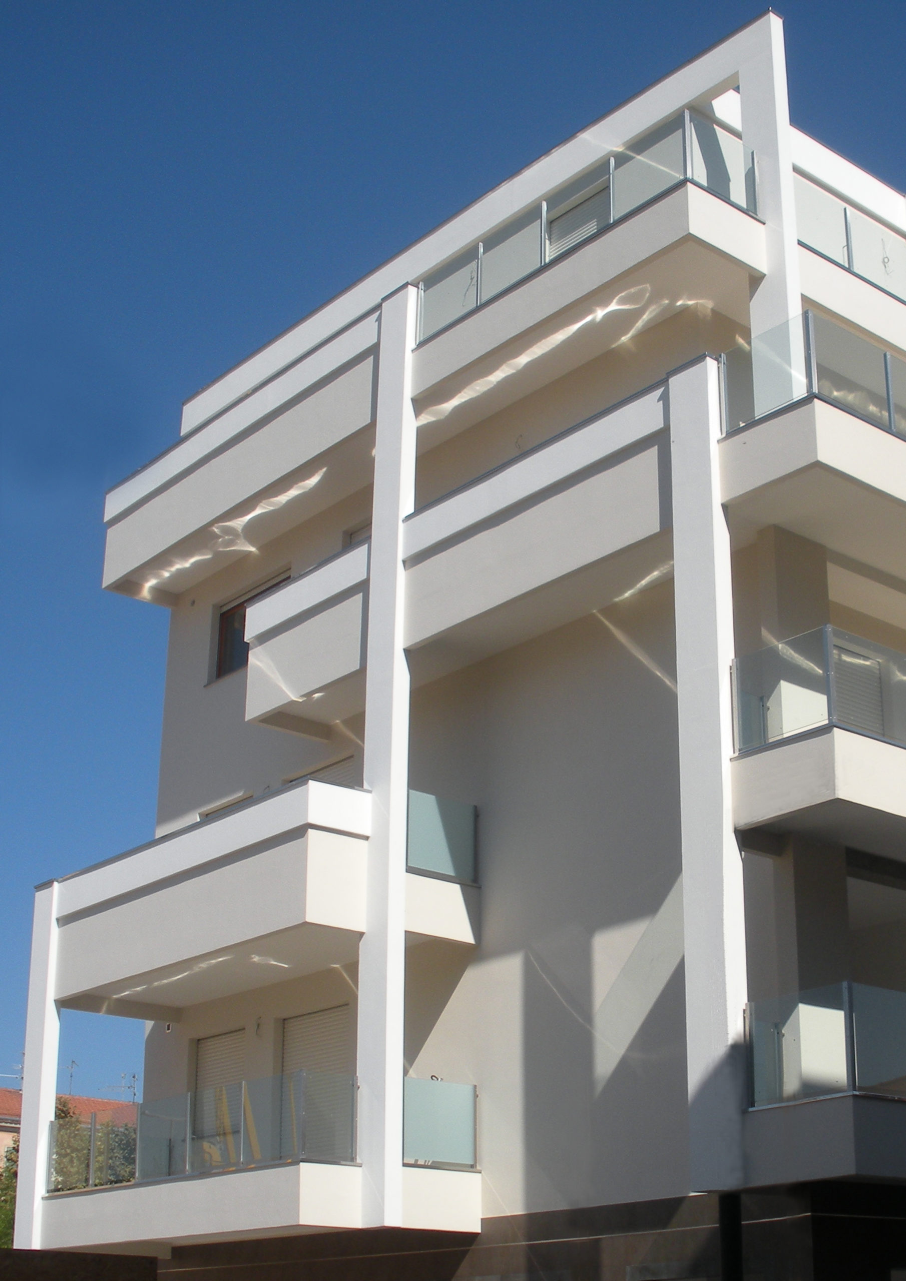 Come suggerito dal nome, quest’ultimo è caratterizzato dalla presenza di un blocco esterno in cristallo che racchiude al suo interno una scala sospesa. L’elemento architettonico “scala” riporta lo stesso concetto statico degli ampi balconi tirantati da pilastri discendenti dall’anello di copertura. L’edificio Cristallo, per la sua originale composizione, è uno dei più particolari e fotografati della città.